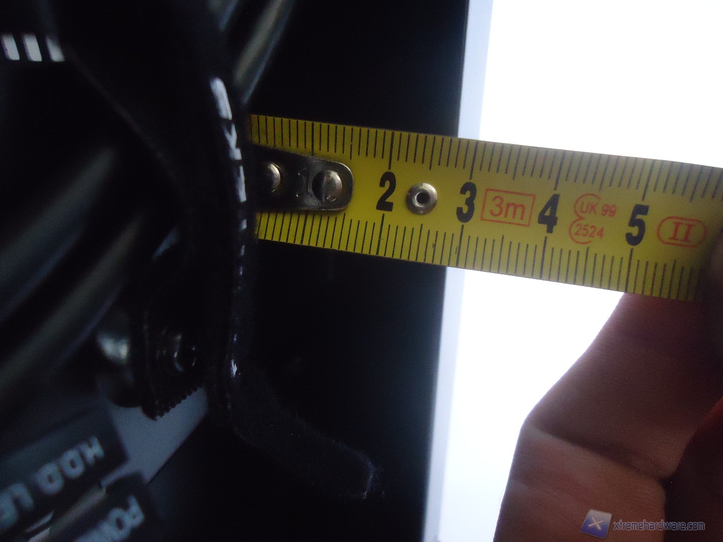 Lo spazio a disposizione per il cable management varia da 2,7cm (cosi come dichiarato dal fornitore) a circa 3,3 cm nella parte inferiore del case: un po’ più di spazio che sarà sicuramente utile.