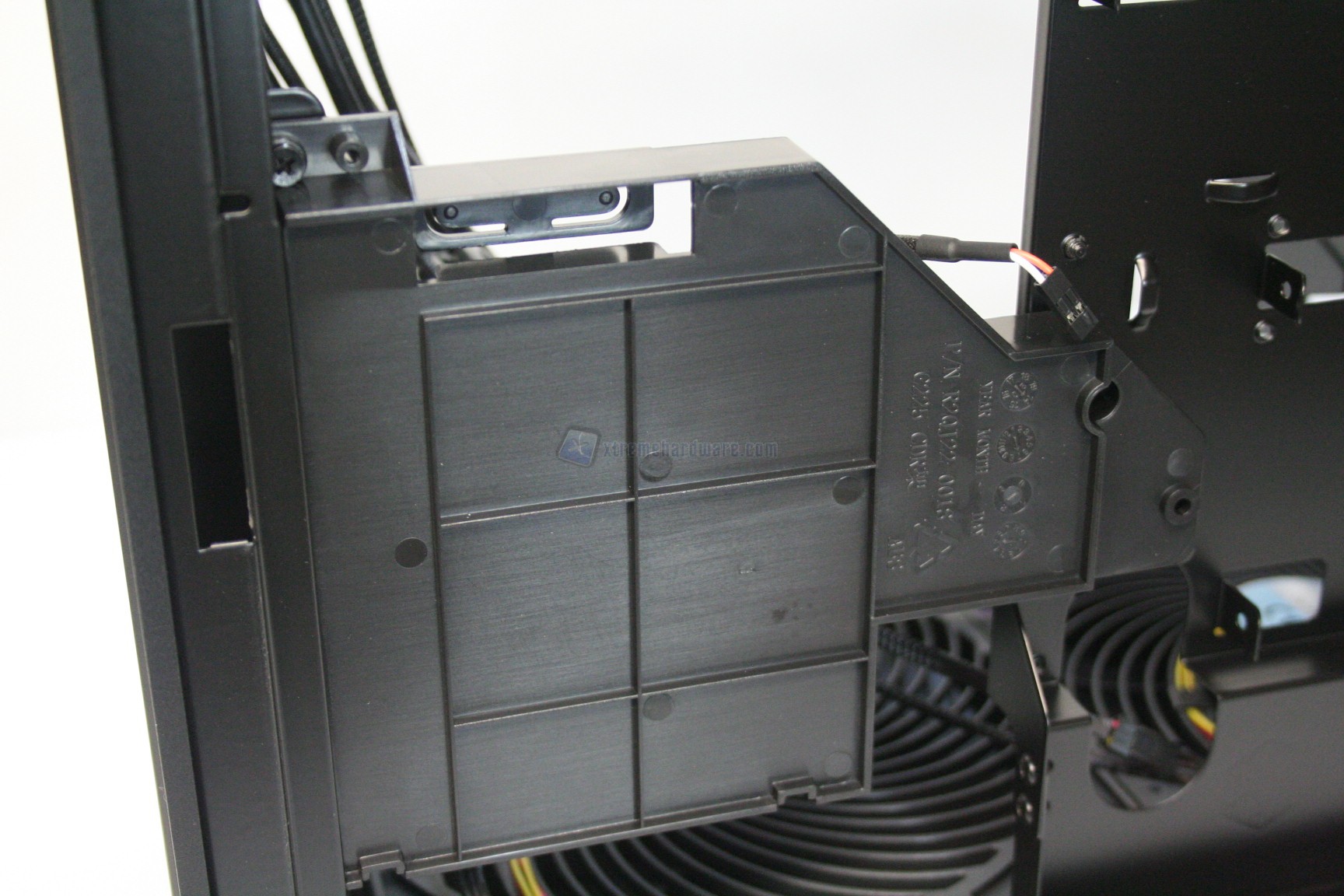 Il posizionamento dell’alimentatore segue la medesima progettazione del modello FT02 e RV01/2/3/5, quindi è posizionato verticalmente; la dissipazione sarà molto valida ma purtroppo il problema è ottenere un buon cablaggio nella parte posteriore. Come vedremo, a causa di un design forse fin troppo restrittivo posteriormente, porterà a qualche eccessiva complicazione. L’alimentatore si inserisce dal basso, ma consigliamo di rimuovere il cage per gli hard disk.