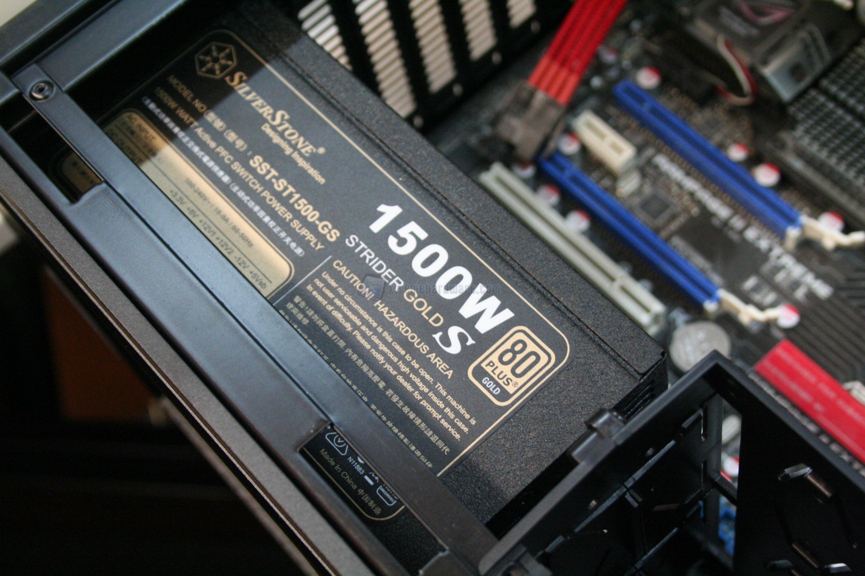 Abbiamo utilizzato un alimentatore che sarà recensito a breve, il SilverStone Strider S Gold da 1500W; nonostante il ridotto format factor, nemmeno questo alimentatore è compatibile con il cage HDD !