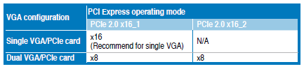 La scheda madre dispone di tre slot PCI Express x16, due slot PCI Express x1 e due slot PCI; gli slot PCI Express x16 possono essere utilizzati tutti e tre per una configurazione SLI tuttavia solo i primi due, contraddistinti da una colorazione blu e bianca, funzioneranno a x8 mentre l'ultimo, in caso di configurazione multi-GPU, funzionerà a x4. Pur essendo predisposta per le tecnologie SLI e CrossFireX, non sarà possibile collegare più di due schede a causa delle limitazioni del chipset; le configurazioni Quad-SLI\CrossFireX disponibili saranno quindi le seguenti: