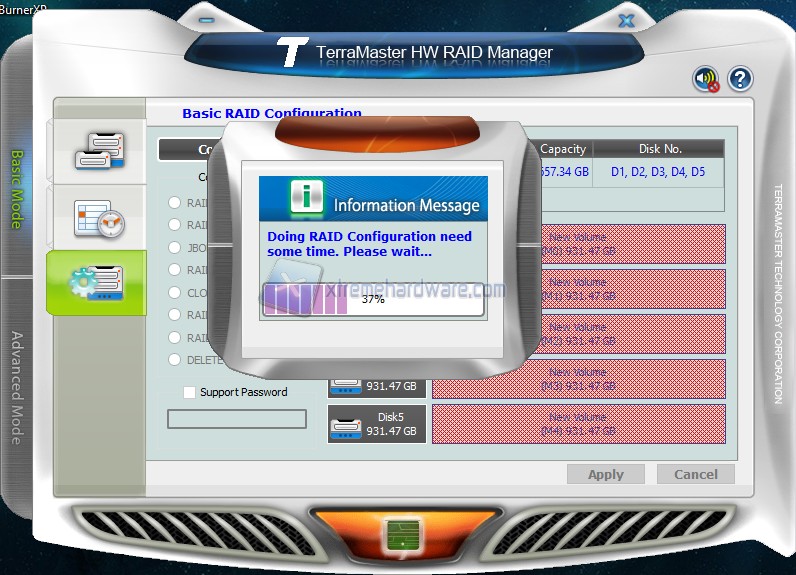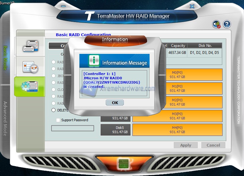 Tramite la “Basic Mode” selezioniamo il volume da creare (nel nostro caso RAID 0) e proseguiamo cliccando su “Apply”.